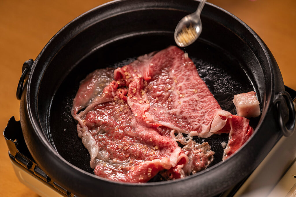 先斗町店では、この特別な京都丹波牛を、すき焼き、しゃぶしゃぶ、お焼きなど、様々な形でご提供しています。