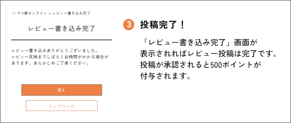 - 投稿いただいた内容を承認後にレビューポイントを付与いたします。