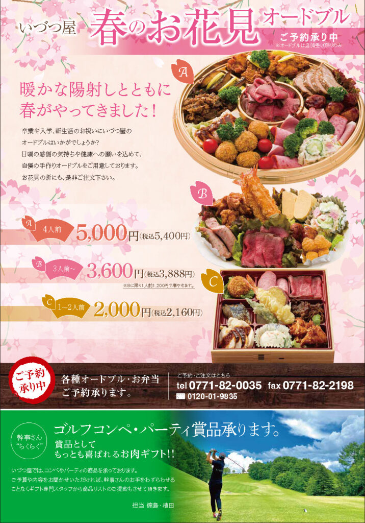 いづつ屋丹波本店、いづつ屋マーケス店 春の新聞折込キャンペーン:卒業・入学のお祝いに特別セールとオードブルのご案内