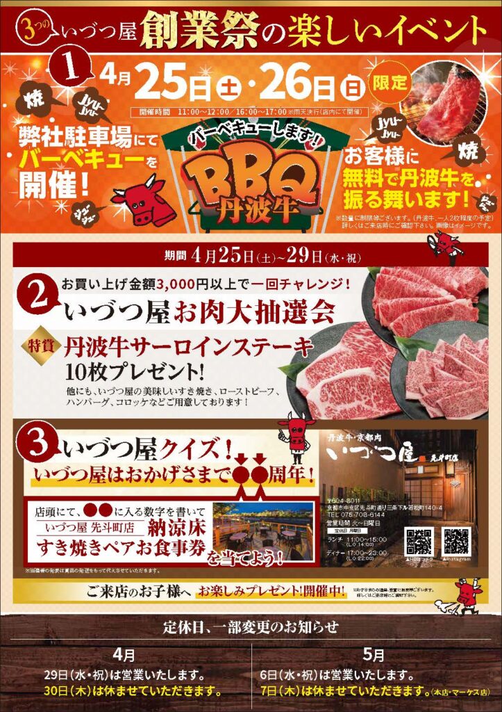 「京丹波でおいしいお肉を!いづつ屋76周年創業祭【4/25〜29】」